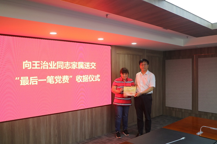 一心一意跟黨走 大額黨費報黨恩——中國國際經濟技術交流中心舉行向王治業同志家屬 送交“最后一筆黨費”收據儀式